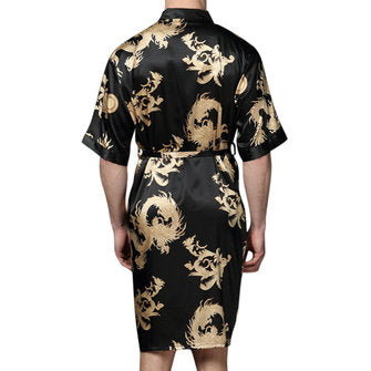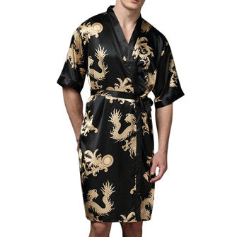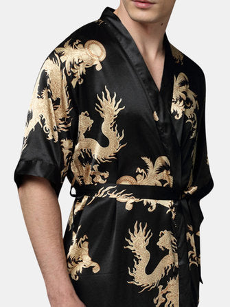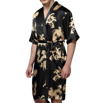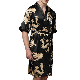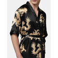 Package included: Robe Men's Plus Size Retro Luxury Stain Japanese Kimono Chinese Dragon Ice Silk Sleepwear